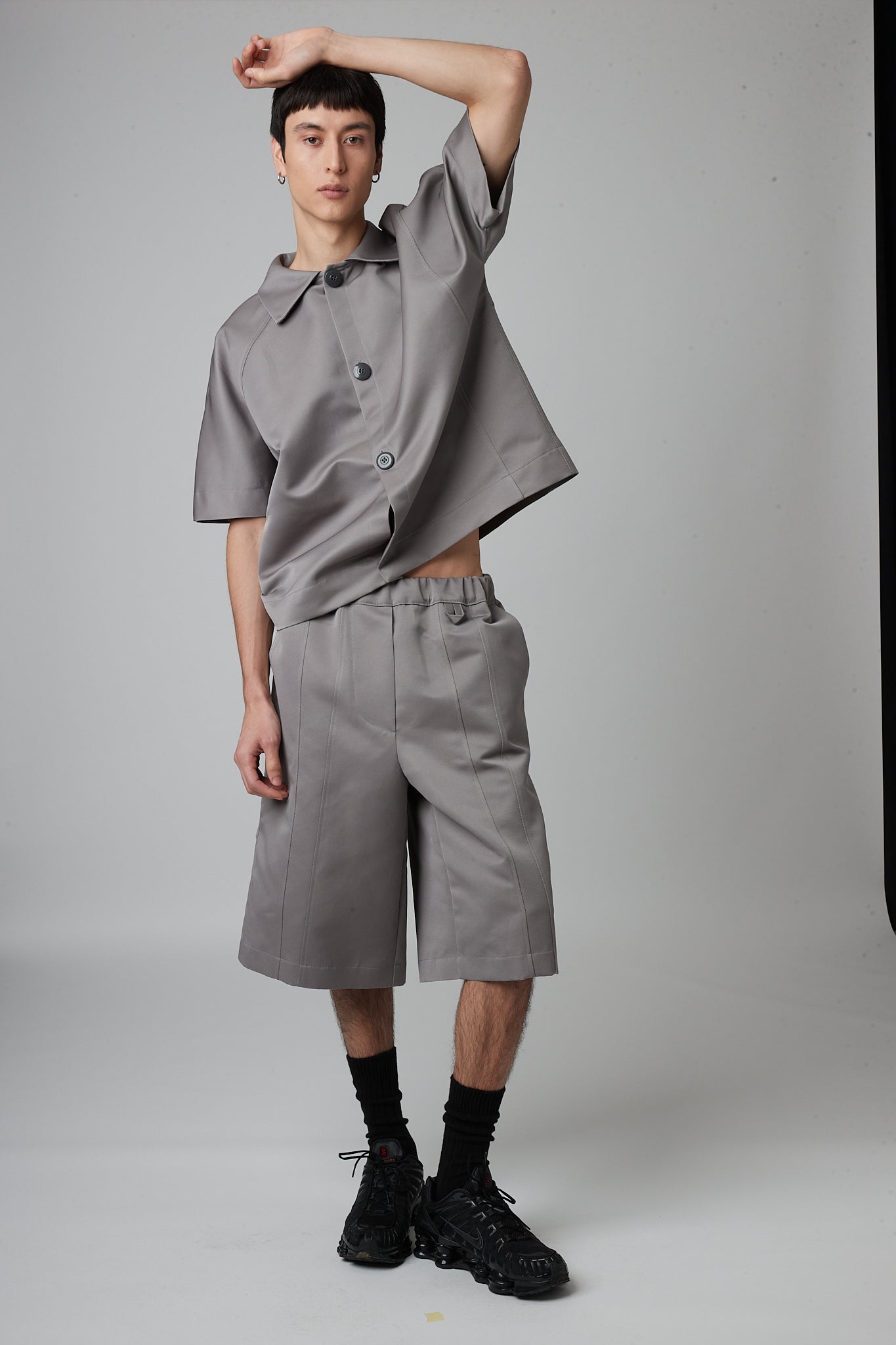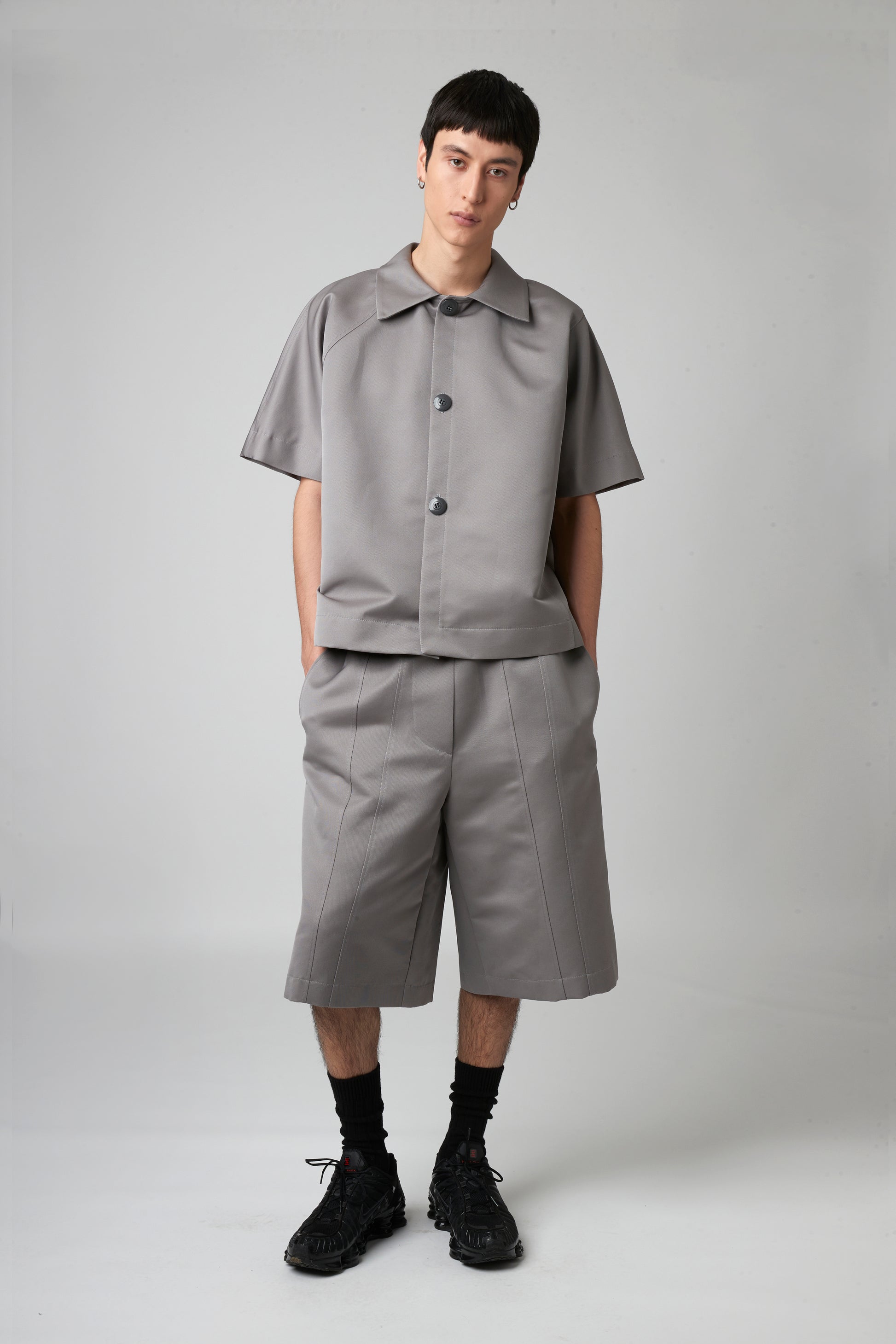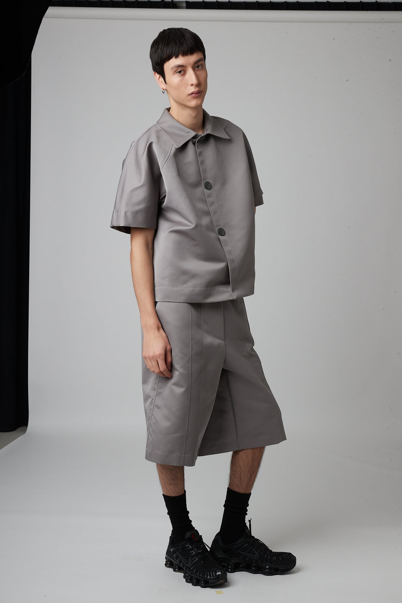 • Relaxed overshirt made of twill cotton, featuring a lapel collar, short sleeves, and a front button closure.