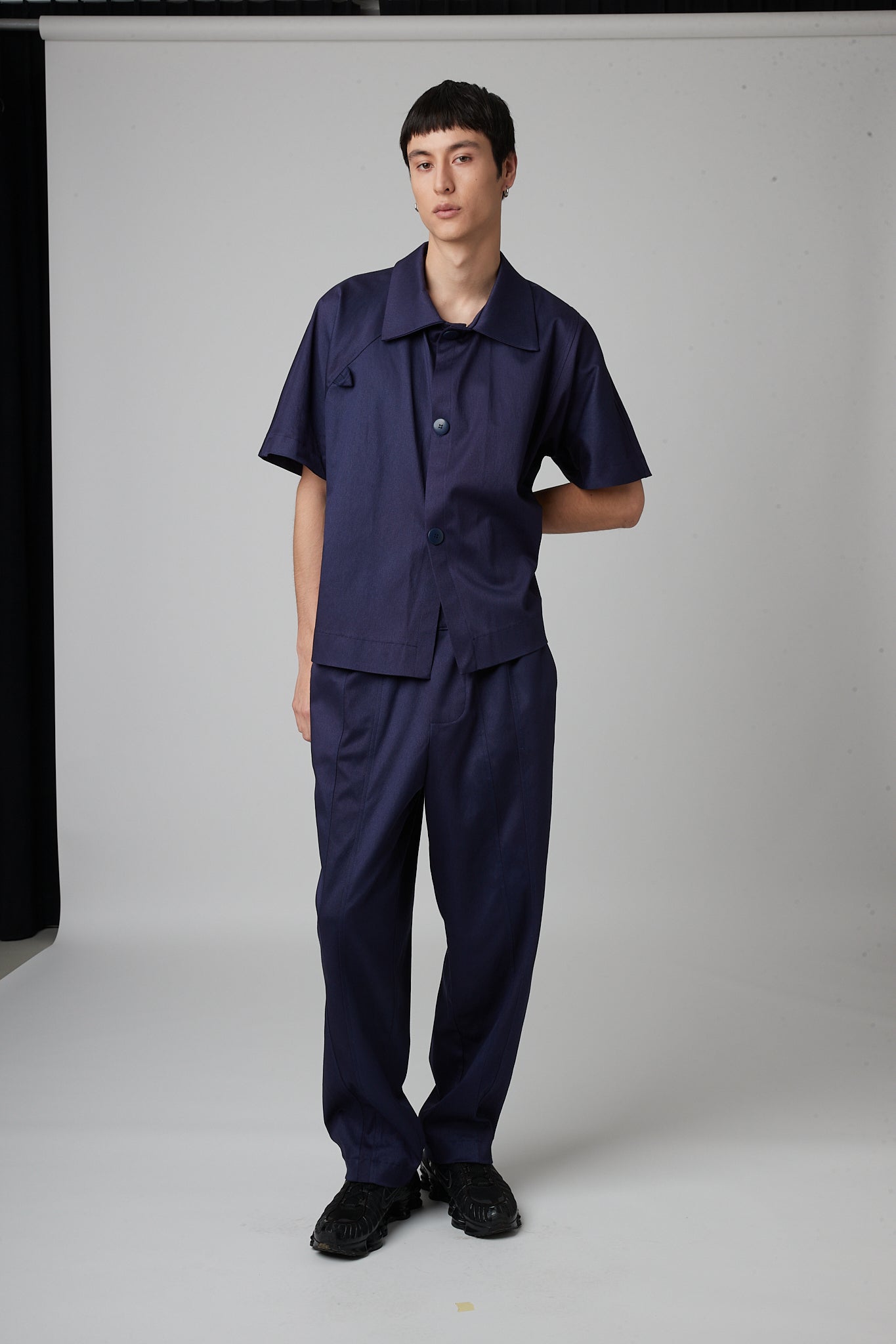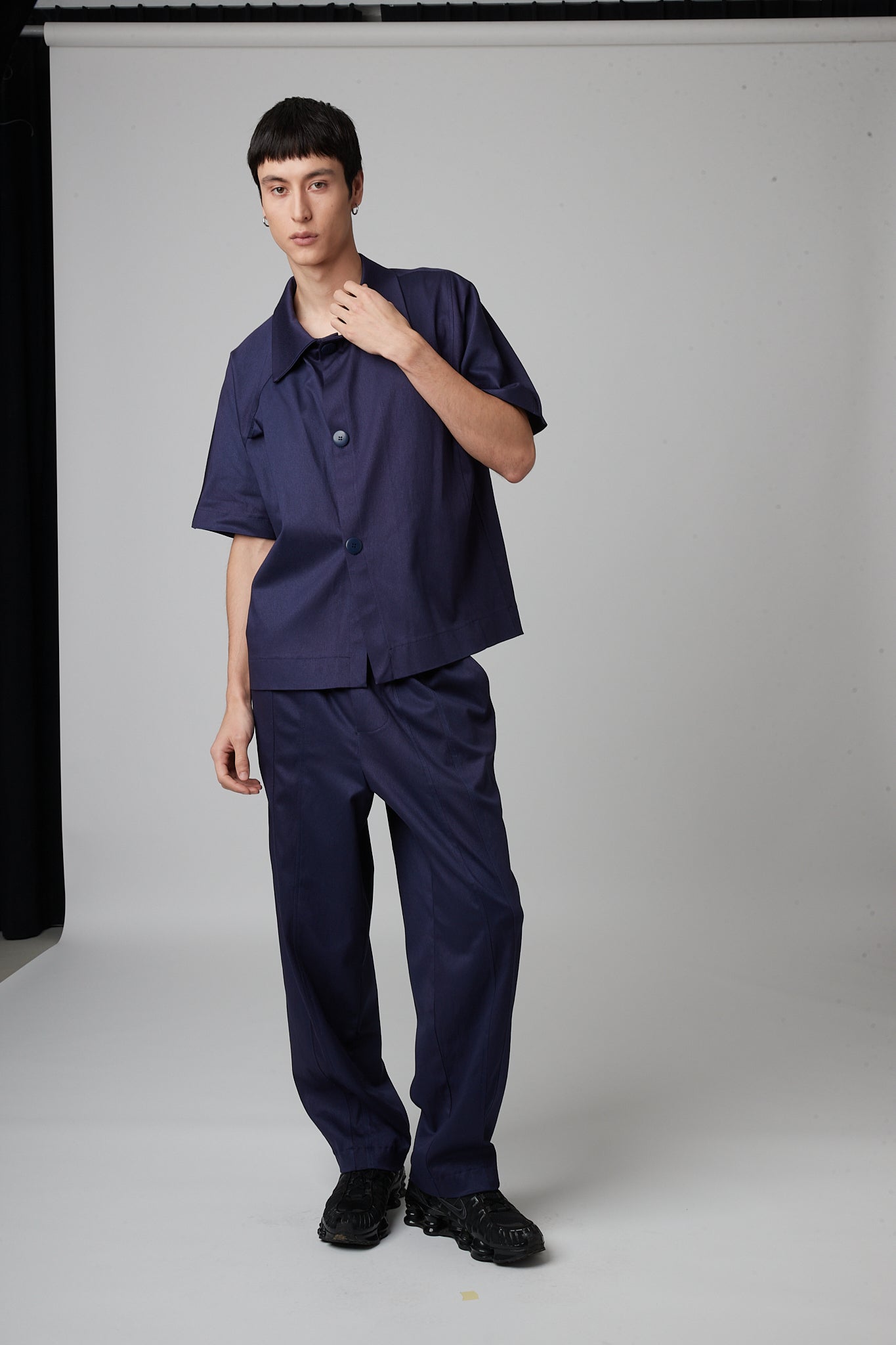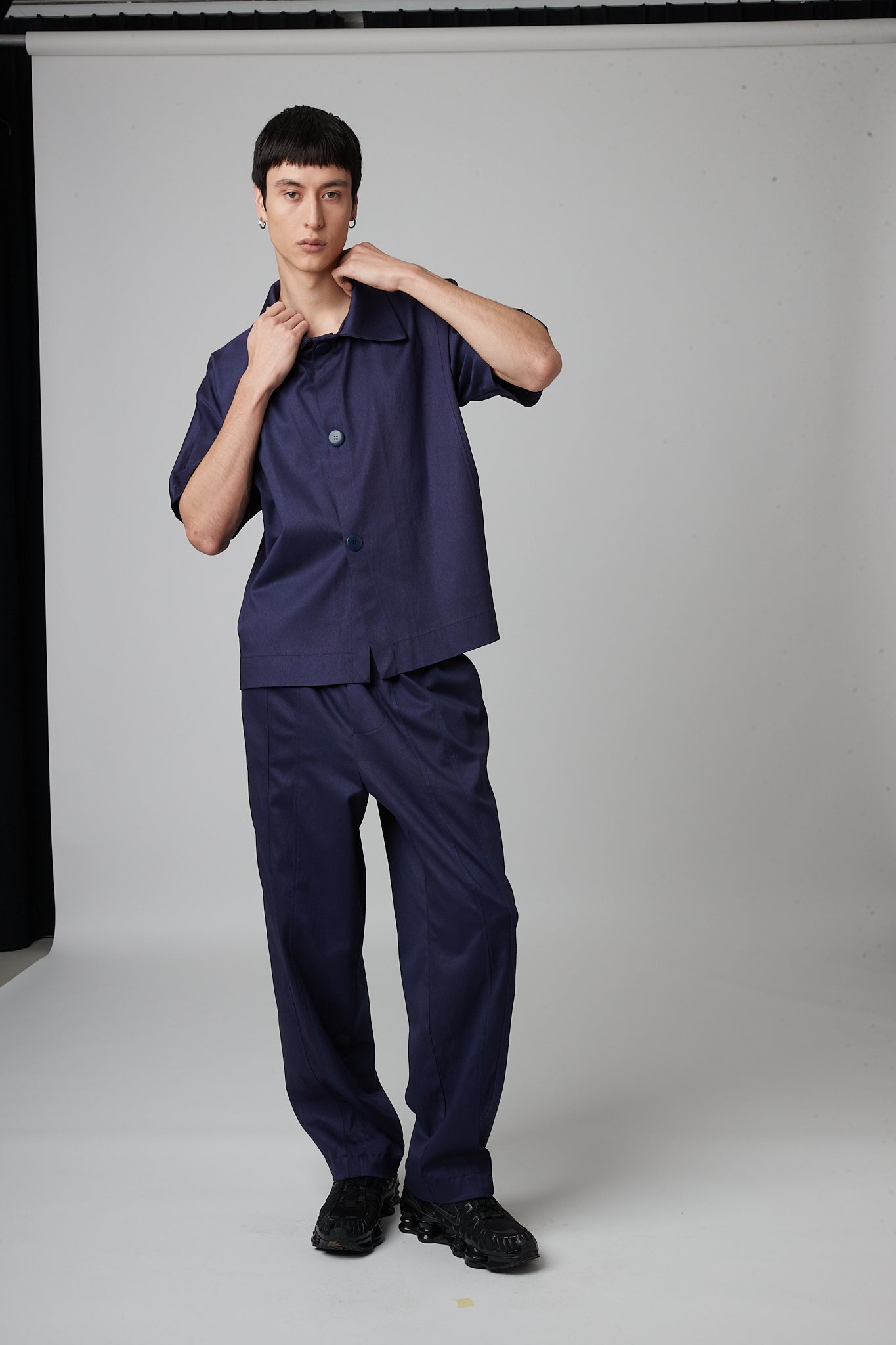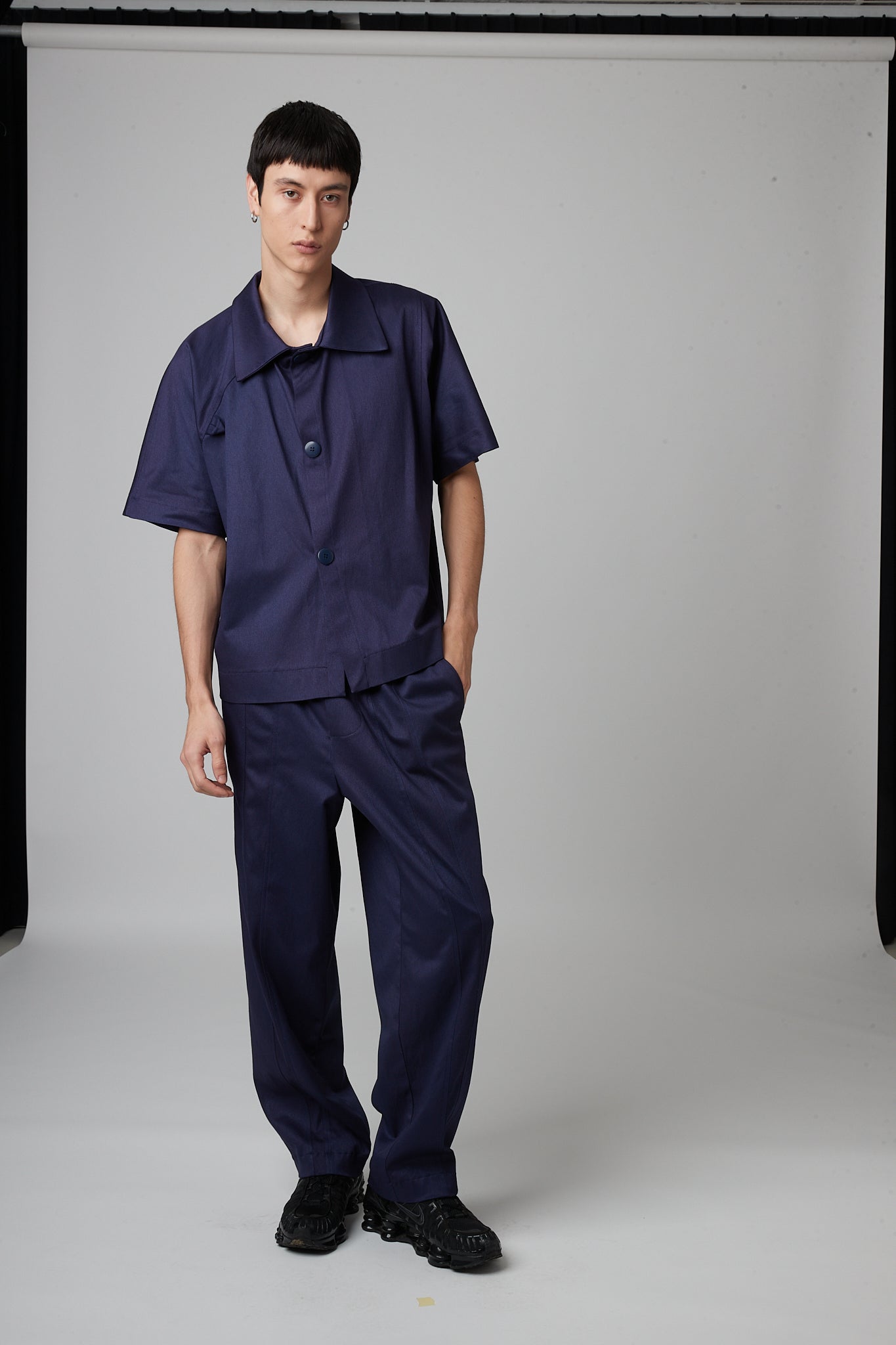 • Relaxed overshirt made of twill cotton, featuring a lapel collar, short sleeves, and a front button closure.