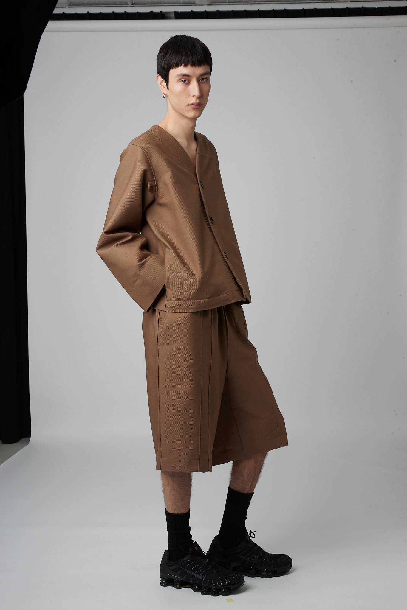 • Relaxed bermuda shorts with a wide elasticated waistband, two slanted side pockets and one pocket on the back.
