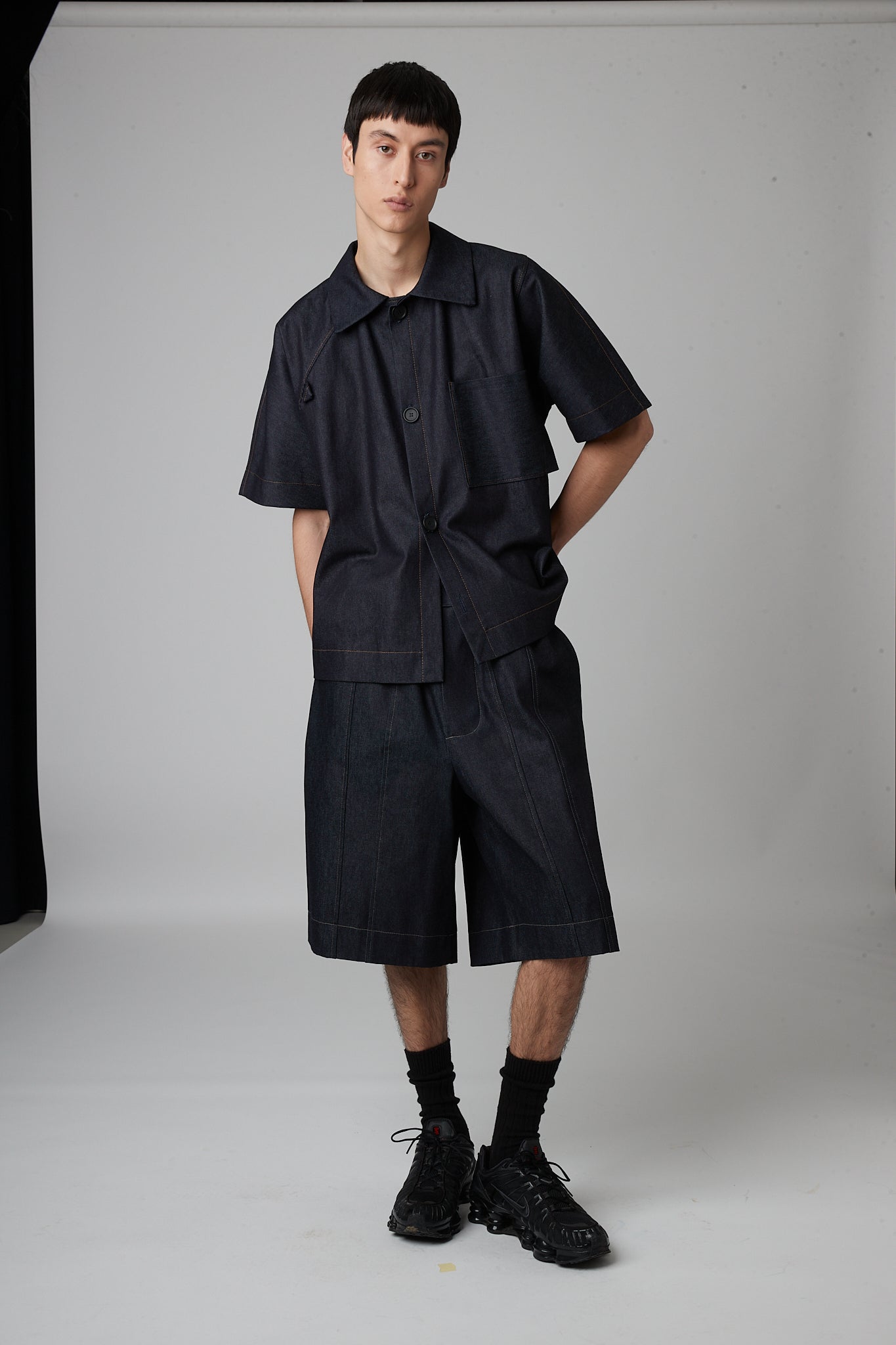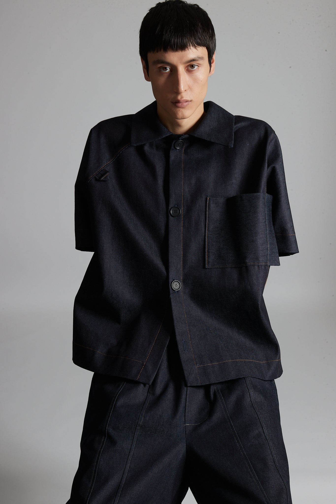 • Relaxed overshirt made of twill cotton, featuring a lapel collar, short sleeves, a chest patch pocket and a front button closure.