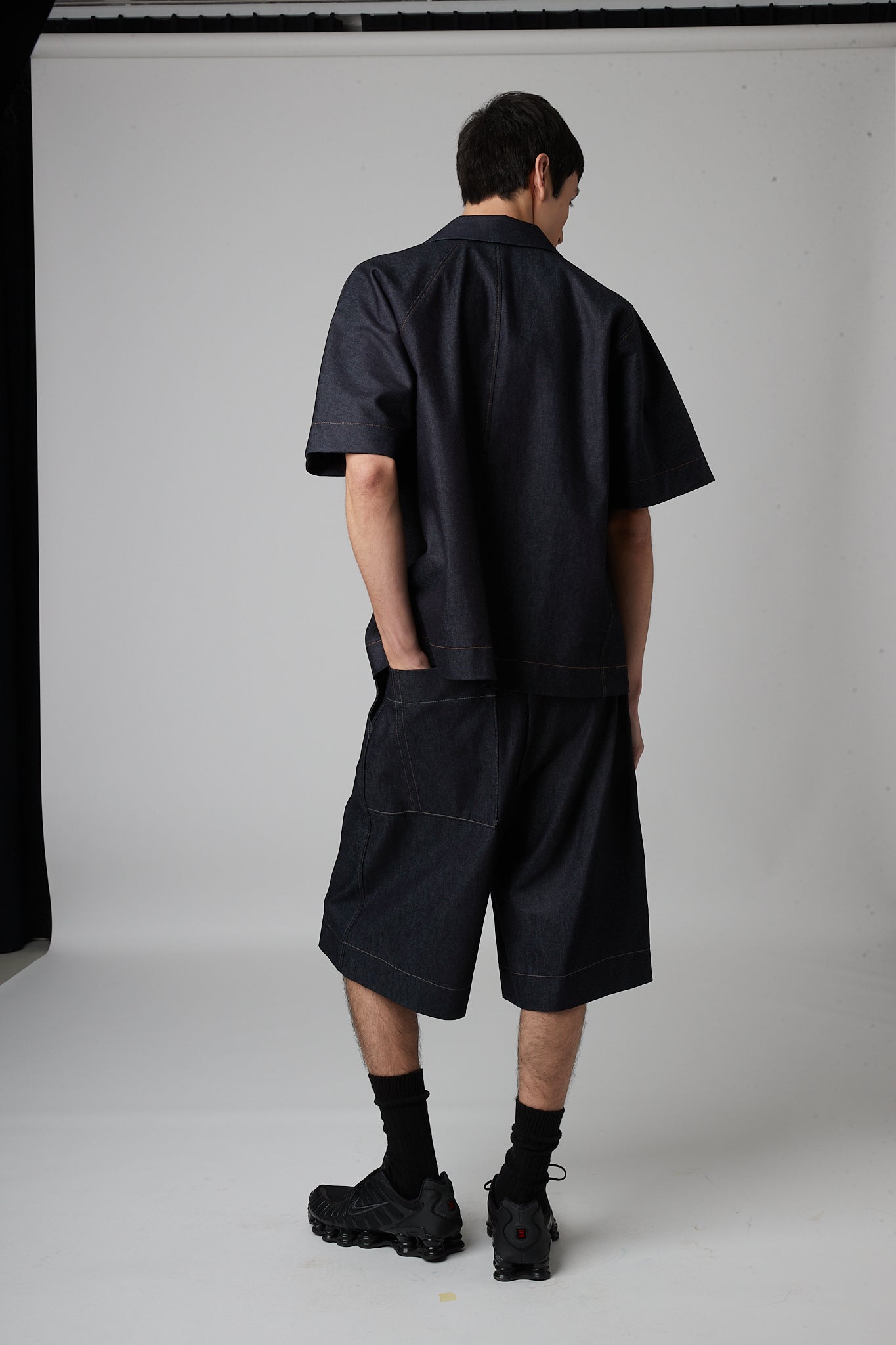• Relaxed bermuda shorts with a wide elasticated waistband, two slanted side pockets and one pocket on the back.